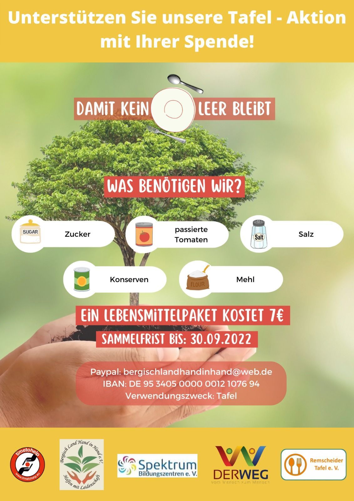 Gemeinsam mit der Remscheider Tafel e.V., Time To Help e.V., Bergisch Land Hand in Hand e.V. und der Initiative Der Weg haben wir im Herbst 2022 eine Tafel-Aktion gestartet und haben 400 Lebensmittelpakete gespendet.